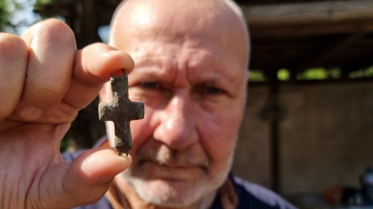 Археологът показа и откритите в началото на тазгодишните разкопки предмети, сред които са кръст и монети.