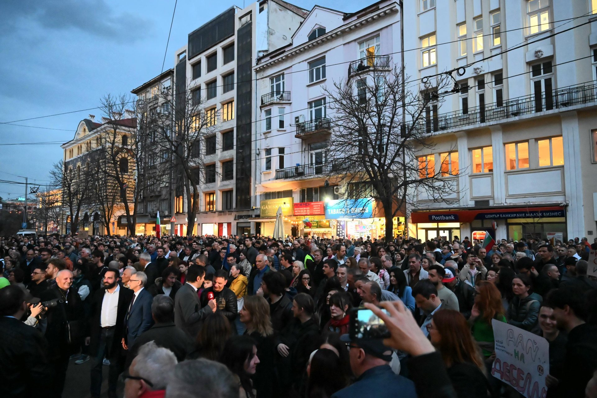 "Излизаме тук в качеството си на граждани, които не са съгласни с тази междуинституционална война, която наблюдаваме от няколко дни. Дейността на правителството и на останалите парламентарни групи, които не са в управлението, е доста съмнителна според мен", коментира пред журналисти Борислав Чернев, част от сдружение "Пловдив на гражданите". По негови думи е възможно изборите да бъдат касирани.