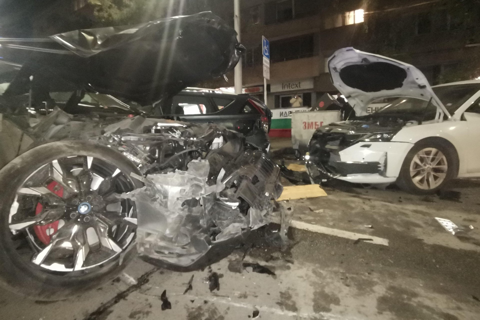 Катастрофата стана на бул. "Витоша" 94 на 2 ноември. Кадри от охранителни камери запечатват момента на удара. Свидетели коментират, че се е чули силен тътен от сблъсъка. При инцидента няма пострадали, но щетите са огромни. Един инвалиден автомобил е тотално унищожен. Пробата за наркотици на шофьора е отрицателна.