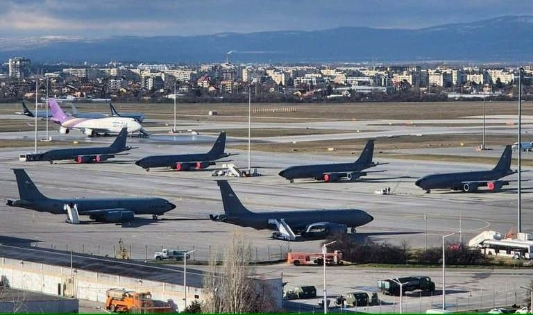 Още на 19 февруари на гражданското летище в София беше забелязано струпване на американски военни самолети - 10 от тях летящи цистерни KC-135 Stratotanker на ВВС на САЩ, предназначени за зареждане на изтребители във въздуха, с каквито НАТО не разполага, по обясненията от днес на министъра. Освен тях, бяха забелязани и три товарни самолета от типовете C-17 и C-130, както и няколко машини Boeing 747, които обикновено се използват за превоз на военен персонал.