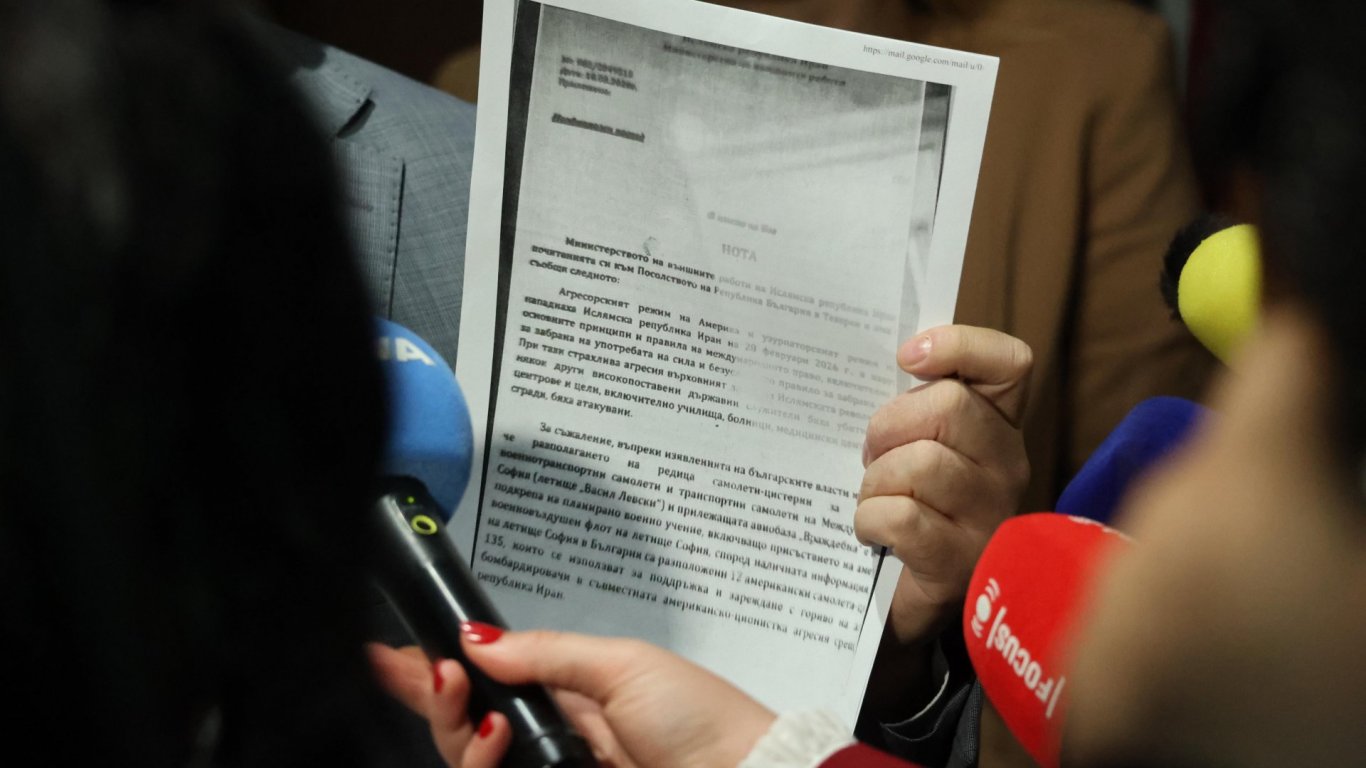От "Има такъв народ" обвиниха служебното правителство, че е укрило нота от Иран, в която ислямската република ни предупреждава, че ще защити националния си интерес, тъй като на българското летище са разположени 12 американски самолета-цистерни, а те зареждат бомбардировачи, участващи в ударите срещу Техеран.